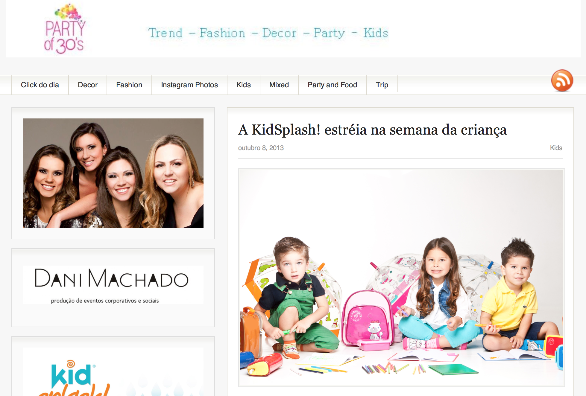 O Party of 30′s é um blog de tendências assinado por 4 amigas super antenadas e cheias de personalidade. Elas postam dicas de moda, beleza, viagens, gastronomia, arquitetura, decoração e crianças. Pra quem é fã “do tudo ao mesmo tempo agora”, esse é o blog. E a KidSplash! já está no Party of 30’s, é só conferir AQUI.